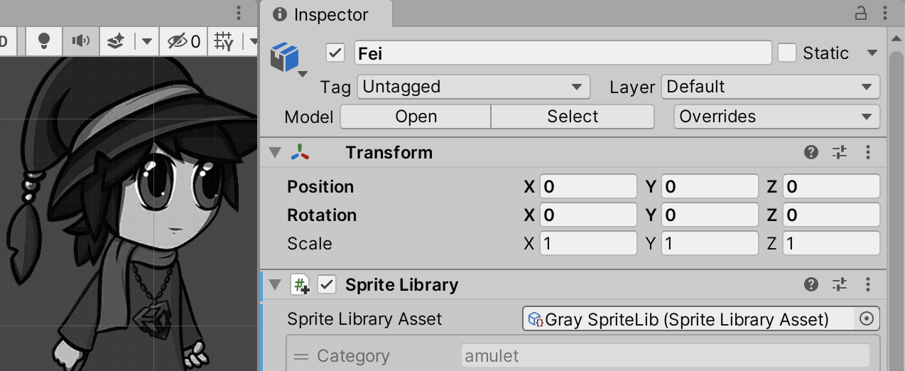 8. The Sprites of the color Prefab should have switched to their grayscale counterparts of the grayscale Sprite Library Asset.