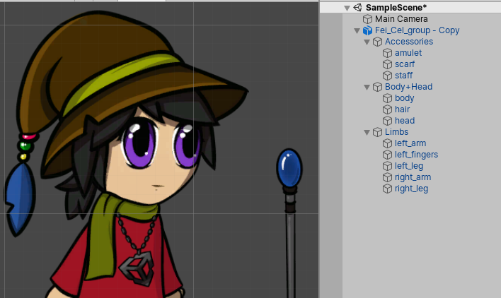 Refer to the examples below of a character designed in Photoshop, and how its original layer hierarchy is transposed to the Prefab.