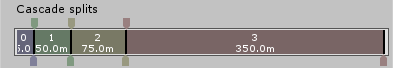 - Move the position of each cascade split. To do so, click on the tab above a split and drag it to adjust the position of that cascade split.