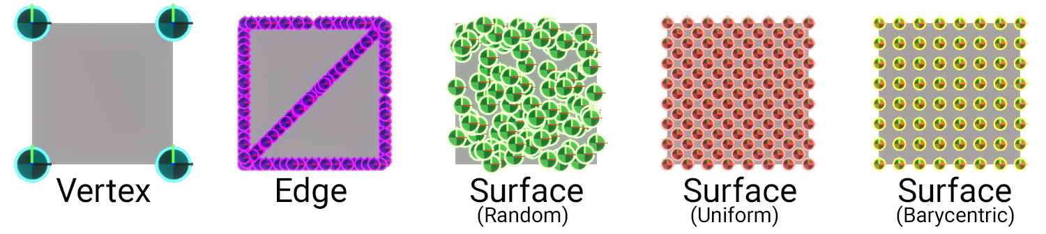 **Right**: Does not use TAA. All embers are clearer, small embers are still visible, but the rest of the image has no anti-aliasing. This version of the Visual Effect Graph allows you to exclude visual effects when Unity calculates [temporal anti-aliasing (TAA)](https://docs.unity3d.com/Packages/com.unity.render-pipelines.high-definition@latest?subfolder=/manual/Anti-Aliasing.html%23temporal-anti-aliasing-taa). This is useful because TAA can cause small particles to disappear. TAA is only available in the High Definition Render Pipeline (HDRP) which means this feature is only relevant to HDRP. Many output Contexts share this setting so, for more information, see [Shared output settings and properties](Context-OutputSharedSettings.md). ### Operators This version of the Visual Effect Graph introduces new Operators: - [Sample Point Cache](Operator-SamplePointCache.md) - [Sample Attribute Map](Operator-SampleAttributeMap.md) ## Improvements The following is a list of improvements Unity made to the Visual Effect Graph in version 11, embedded in Unity 2021.1. Each entry includes a summary of the improvement and, if relevant, a link to any documentation. ### Mesh sampling improvements ![](Images/banner-mesh-sampling-11-improvements.png) > Examples of the new sampling methods this version supports. This version of the Visual Effect Graph improves on Mesh sampling so you can now sample from a Mesh's edges and surfaces. Also, all texture coordinate sample outputs now return a Vector4 instead of a Vector2. This enables you to pass on more per-vertex data from the effect to a shader. Lastly, this version added support for storing Colors using floats. Originally the Visual Effect Graph only supported byte storage. For more information about these improvements, see [Sample Mesh](Operator-SampleMesh.md). ## Issues resolved For information on issues resolved in version 11 of the Visual Effect Graph, see the [changelog](../changelog/CHANGELOG.html).