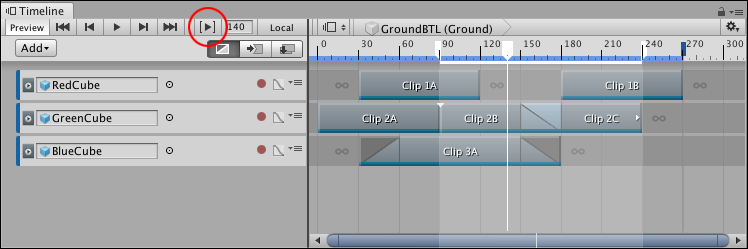 Timeline Playback mode provides a preview of the Timeline instance while in the Timeline window. Timeline Playback mode is only a simulation of Play Mode in the Game View.