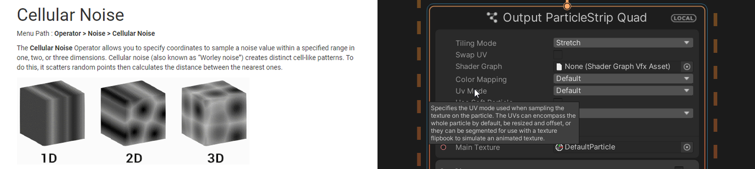 The documentation now includes reference information about all the Nodes in the Visual Effect Graph. Also, Attributes, Blocks, Contexts, Operators, and various menus and options now include tooltips.