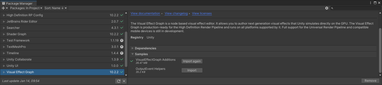 The following is a list of Visual Effect Graph package samples Unity created or improved upon in version 10. Each entry includes a summary of the change and, if relevant, a link to any documentation.