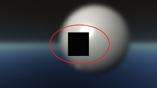 Now that it is easier to see the NaN/Inf values, you can start to look for them. If they are still not obvious, you can look at the bloom dispatches to see where bloom propagates the NaN/Inf pixels from, then pinpoint the exact pixel/s responsible. Taking the example images in the propagating NaNs/Infs section, you can see by how bloom expands the NaN/Inf values that the source is around the center of the screen, on the sphere's Material.
