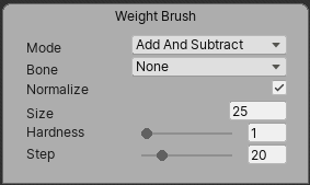 Bone The bone that the Brush is painting influence for. Select a different bone via the drop-down menu.
