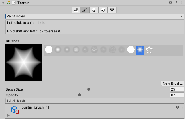 1. View the Terrain in the Inspector and click on the gear button to go to the Terrain Settings section.