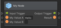 Succession(inputTrigger, outputTrigger); //To display that the input trigger port input will exits at the output trigger port exit. Not setting your succession also grays out the connected nodes but the execution is still done.
