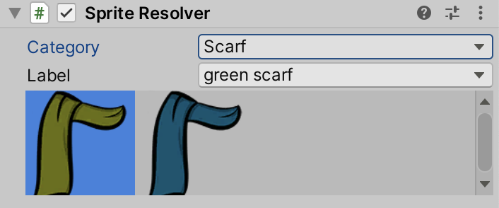 - Add the Sprite Resolver component to the same GameObject.