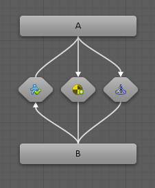 Transitions connect states in such a way for visual scripting to decide when the active state should switch to another state.