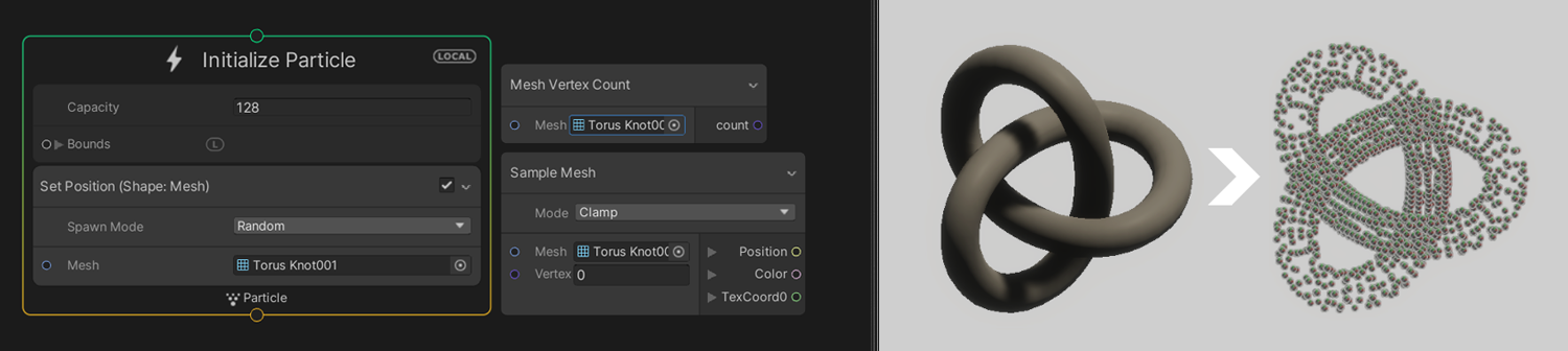 This version of the Visual Effect Graph introduces improvements to working with signed distance fields (SDFs). It added a new Operator to sample SDFs as well as a new Block to set a particle's position based on an SDF.
