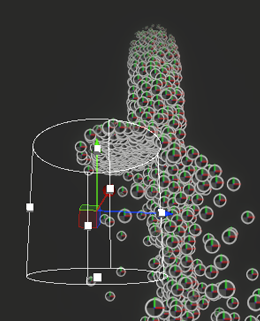 The Collide with Cylinder Block defines a cylindrical volume for particles to collide with.