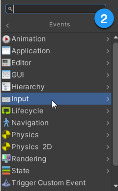 In the Event section (Events > Input), the new input system nodes are listed. -