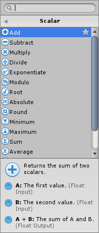 For example, there are four Add units: one for scalars, and one each for 2D vectors, 3D vectors, and 4D vectors. In this case, use their category to distinguish them.