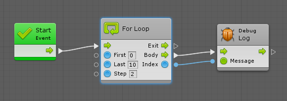 Warning: Do not create an infinite loop. If the condition is always true, the editor hangs. As loop bodies are synchronous, not parallel, there are few uses for while loops in visual scripting.
